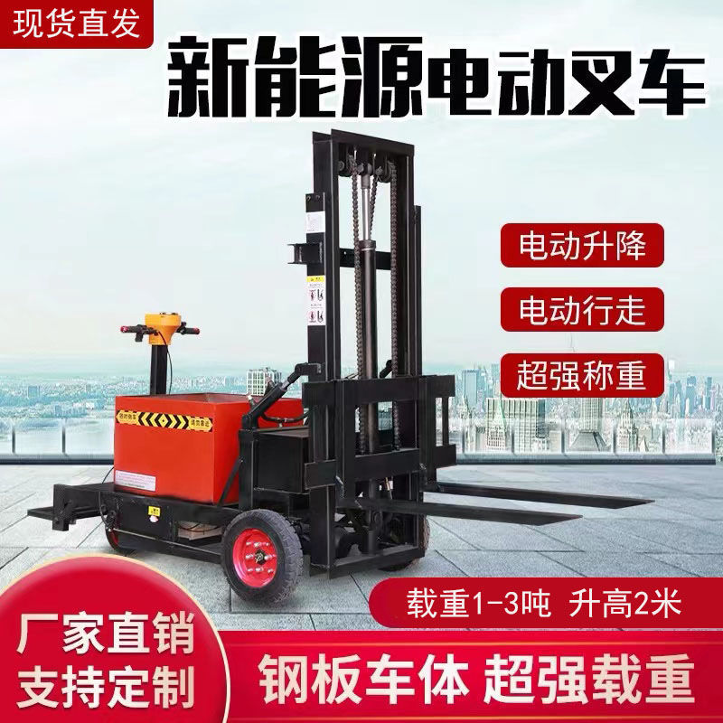 托里县小型电动叉车1吨站驾式2吨液压升高铲车全自动仓储堆高车
